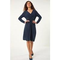 Twist Front Stretch Midi Dress from Roman. Stay stylish this Autumn Winter season in our trendy twist front midi dress. Featuring a flattering v-neckline and 3/4 length sleeves crafted from stretchy jersey fabric. Offering both comfort and style, this dress finishes elegantly at a midi length. Complete your outfit with ankle boots and layer up with a coat for a casual day look. - Manufacturers part number: Roman_5063566022683