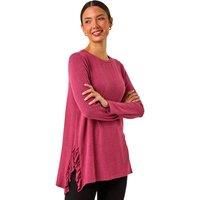 Soft Touch Side Ruffle Top from Roman. Indulge in some stylish comfort with this soft touch ruffle top, a perfect addition to your Autumn/Winter wardrobe. Crafted from a luxurious soft touch jersey fabric, this top features a classic round neckline and elegant long sleeves. The unique ruffle detail at the hips in the side seams adds a touch of feminine flair, making it the perfect top for a casual yet chic look. Pair with jeggings and ankle boots for an effortlessly fashionable outfit! | Roman Women's Soft Touch Side Ruffle Top in Pink | Size: 14 - Manufacturers part number: Roman_5063566050310