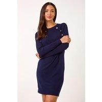Button Detail Knitted Dress from Roman. Get ready for the cooler weather with this chic plain button detail knitted shift dress. Featuring a classic round neck and long sleeves, this knee-length dress is a wardrobe must have for the Autumn/Winter season. The stylish button detail adds a touch of elegance to this classic piece. Pair with tights and ankle boots for a cosy yet fashionable look. | Roman Women's Button Detail Knitted Dress in Navy | Size: 20 - Manufacturers part numbers: Roman_5063566065352|144244p