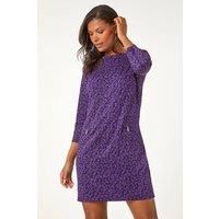 Leaf Print Zip Pocket Detail Dress from Roman. Dress to impress this Autumn/Winter in this chic leaf print dress. Featuring a unique zip pocket detail and a classic round neckline, this knee length dress is perfect for any occasion. The 3/4 sleeves add a touch of sophistication while keeping you warm in the cooler months. Complete your look with tights and ankle boots for a stylish ensemble that's both practical and on trend.