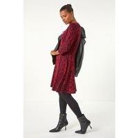 Leaf Print Skater Dress from Roman. Step into Autumn/Winter in style with this chic leaf print skater dress. Crafted from a comfortable ponte stretch fabric, this dress features a flattering fit and flare shape with a trendy V-Neckline and stylish panel detail. Perfect for day wear, this dress is designed with long sleeves for added warmth and can be easily slipped over your head for effortless dressing. Pair with tights and ankle boots for a fashionable and functional look! | Roman Women's Leaf Print Skater Dress in Red | Size: 18 - Manufacturers part number: Roman_5063566069862