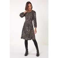 Speckled Print Stretch Dress from Roman. Add a touch of sophistication to your Autumn/Winter wardrobe with this speckled print dress. Crafted from soft stretch jersey fabric, this dress features a classic round neck and flattering empire waistline. The 3/4 sleeves with elasticated cuffs add a stylish touch. Pair with tights and ankle boots for a chic and comfortable look that's perfect for any occasion! | Roman Women's Speckled Print Stretch Dress in Tan | Size: 14 - Manufacturers part number: Roman_5063566070165