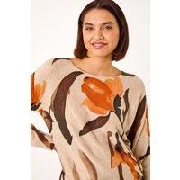 Floral Print Tunic Jumper from Roman. Embrace floral elegance this Autumn/Winter in this charming print tunic. Featuring a classic round neck, this tunic boasts a stunning floral print that adds a touch of femininity to your look. Perfect for casual outings, pair it with jeggings and ankle boots for a stylish and comfortable ensemble. | Roman Women's Floral Print Tunic Jumper in Tan | Size: 14 - Manufacturers part number: Roman_5063566071926