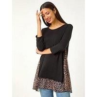 Animal Print Mesh Hem Tunic from Roman. Add an element of fun to your Autumn/Winter wardrobe with this stylish animal hem tunic. Designed with a chic round neck and flattering 3/4 length sleeves, this tunic is perfect for layering. The show stopping feature is the animal print mesh hem that adds a touch of edge and texture to the look. Pair with jeans and ankle boots for an effortless and on trend outfit. | Roman Women's Animal Print Mesh Hem Tunic in Natural | Size: 12 - Manufacturers part number: Roman_5063566076808