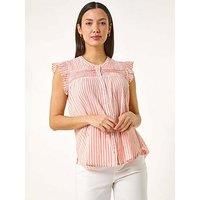 Roman Stripe Print Frill Blouse - Light Pink Add a touch of elegance to your wardrobe with this chic stripe frill sleeve blouse. Featuring an all over vertical stripe pattern this top has a flattering round neck and delicate frill detail on the sleeves. The pleating detail on the front adds a sophisticated touch while the full button-through design is both practical and stylish with a hint of metallic threads running through. Pair this blouse with jeans and sandals for a effortlessly stylish casual look... - Manufacturers part number: WQ1EY