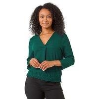Petite Textured Blouson Top from Roman. Add a touch of elegance to your Autumn/Winter wardrobe with this Petite blouson top. The v-neckline and 3/4 length sleeves create a flattering silhouette, while the shirring elastic at the hem adds a stylish blouson effect. Made from a comfortable stretch fabric with a textured finish, this top is easy to pull on and perfect for everyday wear. Pair with tailored trousers and heeled boots for a sophisticated and polished look! | Roman Women's Petite Textured Blous...