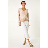 Textured V-Neck Knit Cardigan from Roman. Get ready to add a touch of texture to your Spring/Summer wardrobe with this stylish V-Neck cardigan. Crafted from a textured fabric, this cardigan features a flattering V-Neckline and a practical button opening. The long sleeves and soft hand-touch of this piece make it a comfortable and chic choice for any occasion. Pair it with a simple t-shirt and jeans for an effortless and stylish look! | Roman Women's Textured V-Neck Knit Cardigan Sweater in Natural | Size: 18 - Manufacturers part number: Roman_5063566114791