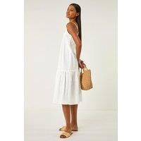 Broderie Frill Tiered Midi Dress from Roman. Update your Summer wardrobe with this charming broderie midi dress. The delicate broderie detailing and strappy design create a feminine look perfect for sunny days. The tiered frill towards the hem adds a playful touch to this a-line dress. With a flattering midi length, it's ideal for both casual day outs and evening gatherings. Pair it with sandals and a denim jacket for an effortless look! | Roman Women's Broderie Frill Tiered Midi Dress in White | Size: 18 - Manufacturers part number: Roman_5063566137264