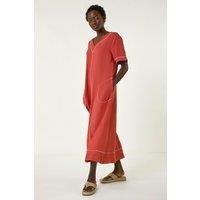 Contrast Stitch Woven Dress from Roman. Get ready to step out in style this Spring/Summer with this chic A-line midi dress. Featuring flattering short sleeves and a classic V-neck, this dress is elevated by the contrast stitch detail, adding a touch of unique flair. Complete with handy pockets for added convenience, this versatile woven dress is perfect for any occasion. Pair it with sandals and a denim jacket for a trendy and effortless look that will take you from day to night seamlessly! | Roman Women's Contrast Stitch Woven Dress in Orange | Size: 10 - Manufacturers part number: Roman_5063566141438