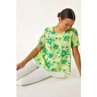 Floral Layered Tunic Top from Roman. Create a relaxed and stylish look with this floral layered tunic. Boasting a comfortable round neckline and short sleeves, this tunic features a pretty printed overlayer and a plain lower layer for added dimension. Perfect for those sunny days, pair this tunic with jeggings and ankle boots for an effortlessly chic ensemble. | Roman Women's Floral Layered Tunic Top in Green | Size: 10 - Manufacturers part number: Roman_5063566148079