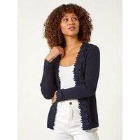 Get this Roman Originals Lace Trim Knit Cardigan for Women UK - Ladies Everyday Holiday Spring Summer Comfy Soft Evening Vacation Work Party - Noir - Size 18 from Amazon for only £36.00. We found this offer today, so hurry whilst stocks last!