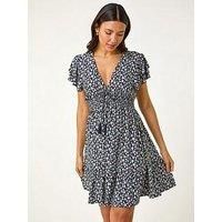 Roman Ditsy Frill Stretch Dress - Navy Brighten up your Spring/Summer wardrobe with this charming ditsy frill dress. Featuring a flattering v-neck and delicate frill short sleeves, this dress is cinched at the waist with ruched detailing in a fit and flare shape that falls to a knee length. Perfect for warm days, pair with sandals and a denim jacket for a casual yet stylish look. Material Content: 94% Polyester, 6% Elastane Washing Instructions: Machine Washable Length: Approx. 96cm V-Neckline Short Sle... - Manufacturers part number: WICOA