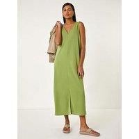 Roman Soft Pique Stretch Midi Dress - Green Effortlessly chic and comfortable this soft pique jersey midi dress is a must have for your Spring/Summer wardrobe. Featuring a stylish v-neck this dress is designed with a modern split at the centre front hem for added movement and style. Perfect for any casual occasion pair with sandals and a denim jacket for a laid-back and on-trend look. Material Content: 71% Viscose 29% Polyester Washing Instructions: Machine Washable V-Neckline Sleeveless A-Line Shape