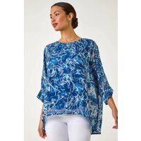 Abstract Print Overlay Tunic Top from Roman. Unleash your playful side with this abstract print tunic top, perfect for the Spring Summer season. Featuring a flattering round neckline and trendy 3/4 length sleeves, crafted from a comfortable woven fabric with an eye-catching abstract print overlay. The loose tunic shape offers comfort and style effortlessly, making it a versatile choice for any occasion. Pair with a denim jacket and jeggings for a casual yet stylish look that's perfect for everyday outings! | Roman Women's Abstract Print Overlay Tunic Top in Blue | Size: 10 - Manufacturers part number: Roman_5063566178595