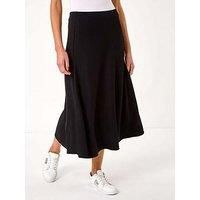 Roman A-line Pull On Stretch Skirt Effortlessly stylish and comfortable, this pull-on jersey skirt is a must have for the Autumn/Winter season. Featuring an elasticated waist for easy wear and a flattering A-line shape, this versatile skirt can be paired with your favourite knitwear and boots for a chic and cosy look! Material Content: 86% Viscose, 10% Polyamide, 4% Elastane Washing Instructions: Machine Washable Length: Approx. 83cm A-line Silhouette Stretch Fabric