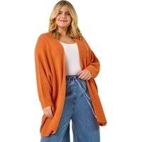 Curve Light Weight Knit Cardigan from Roman. Add a versatile layer to your wardrobe with this edge to edge knit cardigan, designed for effortless style and comfort. Featuring long sleeves and a below hip length, its perfect for light coverage on breezy spring and summer days. The open front design makes it easy to layer over a T-shirt and jeans for a relaxed yet polished look. Ideal for casual outings or layering in transitional weather. | Roman Women's Curve Light Weight Knit Cardigan Sweater in Orange | Size: 20 - Manufacturers part number: Roman_5063566197640