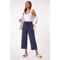 Roman Cropped Linen Trousers - Navy Get ready for warmer days with these stylish crop linen trousers! Featuring an elasticated waistband with a drawstring for ultimate comfort these trousers are perfect for a laid-back yet chic look. Pair them with a cute cami top and sandals for effortless Spring/Summer style. Material Content: 82% Viscose 18% Linen Washing Instructions: Machine Washable Inside Leg Length: Approx. 62cm Elasticated Waistband Cropped Length Drawstring Detail - Manufacturers part number: Roman_5063566199101