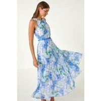 Floral Print Pleated Maxi Dress from Roman. Get ready to shine in this stunning floral print maxi dress this Spring Summer. The flattering gathered halter neckline and sleeveless style make it perfect for your next special occasion, while the pleated skirt falls elegantly to a maxi length. Crafted from airy chiffon fabric adorned with a watercolour floral print, this dress is a must-have. Pair with strappy heels and a trendy bolero for a sophisticated look. - Manufacturers part number: Roman_5063566205888
