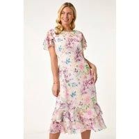 Petite Floral Double Frill Dress from Roman. Put a spin on your summer wardrobe with this Petite double frill dress. Crafted from a comfortable woven fabric, this dress features a round neck and short sleeves for a flattering fit. The standout feature is the double frill hem that adds a touch of fun and movement to the design. Perfect for special occasions or evenings out, style this dress with strappy heels and a chic blazer for a sophisticated look that will turn heads. | Roman Women's Petite Floral ...
