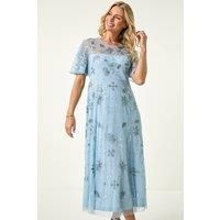 Petite Embroidered Mesh Midi Dress from Roman. Add a touch of elegance to your Spring/Summer wardrobe with this exquisite embroidered dress. Featuring flattering short flared sleeves and a round neck, this fit and flare style dress boasts intricate embroidery detailing on a lined fabric. It is designed with a concealed zip on the centre back seam and bust darts for a tailored fit. Perfect for any special occasion, pair it with strappy heels and a blazer for a chic and sophisticated look! | Roman Women'... - Manufacturers part number: 147307p