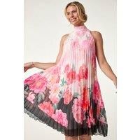 Petite Floral Halter Pleat Dress from Roman. Get ready to make a statement in this gorgeous pleated halter dress. Designed with a chic halterneck neckline, this knee-length dress is crafted from a luxurious woven fabric that drapes beautifully on the body. The flattering pleats add texture and movement, creating a stylish and sophisticated look. Perfect for those special occasions, pair this dress with some strappy heels for an elegant and feminine outfit. - Manufacturers part number: Roman_5063566245075