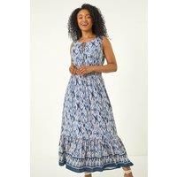 Petite Aztec Print Frill Midi Dress from Roman. This Petite aztec print dress is an absolute must-have for your Spring wardrobe. Designed with a classic round neckline and a unique keyhole detail with drawstring front detail. Crafted from a comfortable woven fabric with an eye-catching aztec border print. The ruched waist adds extra flair and falls at midi length. Complete your look by pairing it with a denim jacket and wedged heels for the perfect outfit! - Manufacturers part number: Roman_5063566245815