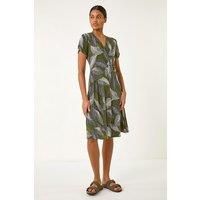 Leaf Print Ring Detail Midi Dress from Roman. Embrace tropical vibes in this stunning leaf print midi dress. Designed with a feminine v-neckline and short sleeves, the wrap over front bodice creates a flattering silhouette. Crafted from a stretch jersey fabric, this dress features a tropical leaf puff print, ending at a midi length with a trendy side ring detail. Complete your Spring Summer look by pairing it with a denim jacket and wedged heels for effortless style! - Manufacturers part number: Roman_5063566257740