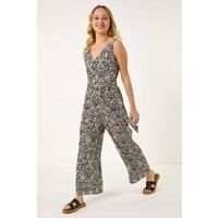 Dusk Abstract Print Jumpsuit from Roman. Effortlessly chic and perfect for the warmer months, this abstract jumpsuit is a must-have for your Spring/Summer wardrobe. Featuring a flattering v-neckline and stylish sleeveless design, this jumpsuit is the epitome of easy elegance. Pair it with sandals and a denim jacket for a laid-back yet sophisticated look that will take you from day to night with ease.