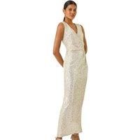 Sequin Twist Detail Maxi Dress from Roman. Shimmer and shine this festive season with our statement sequin maxi dress. Crafted from a stretchy woven material and adorned with opulent sequins, you'll be the star of the show at any event. Featuring a sleeveless design, this dress boasts a flattering v-neckline, twist detail and a wrap bodice that flatters your waistline. Perfect for formal nights on the Cruise or Christmas parties alike, pair with your favourite heels and a clutch bag for a sophisticated... - Manufacturers part number: Roman_5063566271531