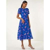 Get this Roman Floral Print Pleat Neck Midi Dress for Women UK Ladies Spring Everyday Summer Holiday Round Neckline Comfy Short Sleeve Soft Fit & Flare Frock Dinner Date - Blue - Size 20 from Amazon for only £45.00. We found this offer today, so hurry whilst stocks last!