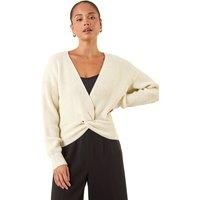 Petite Twist Front Knit Jumper from Roman. Stay cosy and stylish this Autumn Winter with our gorgeous Petite twist front knit jumper. Delicately crafted from a soft knitted fabric, this jumper features a feminine v-neckline with a trendy twist front detail, while long drop shoulder sleeves add a touch of warmth, making it versatile for any occasion. Pair with jeggings and ankle boots for a trendy and comfortable look that will take you from day to night effortlessly! | Roman Women's Petite Twist Front Knit Jumper in Ivory | Size: 14 - Manufacturers part number: Roman_5063566281783