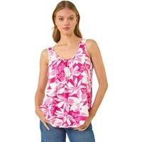 Sleeveless Floral Print Stretch V-Neck Vest from Roman. Have fun with your style this season with this contrast floral print vest. Cut from a comfortable stretch jersey fabric, this piece features a v-neckline with pleat detail and is designed in a Summer-ready sleeveless style. Designed to pull on overhead this is a perfect everyday style, simply pair with relaxed denim shorts or cropped trousers and add sandals for every occasion from home to holiday! | Roman Women's Sleeveless Floral Print Stretch V-Neck Vest in Pink | Size: 12 - Manufacturers part numbers: Roman_5063566298910|193011p