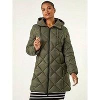 Roman Diamond Quilt Padded Coat - Khaki Bundle up in style with this diamond padded coat for the ultimate Autumn/Winter essential. Featuring a cosy hood and practical long sleeves this coat is crafted with a diamond quilted pattern for a touch of texture. The zip front ensures easy wear while keeping you snug and warm. Perfectly paired with knitted jumpers and jeans this coat is a must-have for chilly days! Material Content: 100% Polyamide Washing Instructions: Machine Washable Length: Approx. 93cm Long... - Manufacturers part numbers: 120191p|Roman_5063566306110
