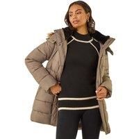 Faux Fur Padded Belt Coat from Roman. Get ready to stay trendy and warm in our must-have faux fur padded coat. With cosy long sleeves and a front zip, this coat features a belted detail to ensure a flattering fit. The luxurious faux fur hood and essential side pockets add both style and practicality. Pair with wide leg jeans and ankle boots for a complete cold-weather look! - Manufacturers part number: Roman_5063566315723