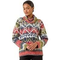 Aztec Print Roll Neck Knit Jumper from Roman. Stay cosy and stylish this Autumn Winter in this vibrant aztec print knit jumper. The jumper features a warm roll neckline and full-length sleeves to keep you toasty. Cut from a mix of woven fabrics with an eye-catching aztec print, this jumper is a must-have for the season. Simply pair with wide leg trousers and ankle boots for a complete and fashionable look! | Roman Women's Aztec Print Roll Neck Knit Jumper in Orange | Size: 14 - Manufacturers part number: Roman_5063566330252