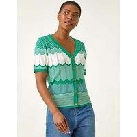 Roman Wave Stitch Button Knit Jumper - Green Elevate your Autumn Winter wardrobe with this luxurious wave stitch knit jumper. The classy v-neckline is adorned with gold button details while the short sleeves add a touch of elegance. Cut from a soft mix of knitted fabrics in a flattering jumper shape this piece is perfect for staying stylish and cosy during the colder seasons. For a complete look style with a denim jacket and jeggings! Material Content: 78% Viscose 18% Polyester 4% Lyocell Washing Instru... - Manufacturers part numbers: 162371p|WONN3