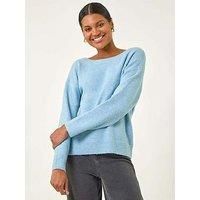 Ribbon Bow Tie Back Jumper from Roman. Add a touch of sweetness to your Autumn/Winter wardrobe with this ribbon tie back jumper. The lovely soft knit features a soft round neckline and long sleeves, perfect for staying cosy during the colder months. The subtle ribbed hem adds a chic touch, while the delicate self tie bow detailing at the back adds a charming twist to this classic piece. Pair with jeans and trainers for a casual yet stylish everyday look! | Roman Women's Ribbon Bow Tie Back Jumper in Blue | Size: 10 - Manufacturers part number: Roman_5063566337183