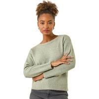 Ribbon Bow Tie Back Jumper from Roman. Add a touch of sweetness to your Autumn/Winter wardrobe with this ribbon tie back jumper. The lovely soft knit features a soft round neckline and long sleeves, perfect for staying cosy during the colder months. The subtle ribbed hem adds a chic touch, while the delicate self tie bow detailing at the back adds a charming twist to this classic piece. Pair with jeans and trainers for a casual yet stylish everyday look! | Roman Women's Ribbon Bow Tie Back Jumper in Dark Green | Size: 14 - Manufacturers part number: Roman_5063566337404