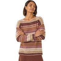 Bobble Knit Stripe Jumper from Roman. Stay cosy and stylish this Autumn/Winter season with this charming bobble knit stripe jumper. Featuring a classic crew neck and long sleeves, this jumper is the perfect choice for chilly days. The fun bobble knit design adds a touch of playfulness to your look. Pair with your favourite jeans and ankle boots for a chic and comfortable outfit that will keep you warm throughout the season. | Roman Women's Bobble Knit Stripe Jumper in Natural | Size: 12 - Manufacturers part number: Roman_5063566337497