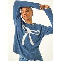 Roman Contrast Stitch Bow Knit Jumper - Blue Stay cosy and stylish this Autumn Winter season with this charming contrast stitch knit jumper. Crafted from a soft-touch knit fabric this jumper features a classic crew neckline and long sleeves for maximum comfort. The standout contrast bow stitch adds a fun twist to this classic piece. Style with wide-leg trousers and ankle boots for an on-trend look that will keep you warm during the colder months. Material Content: Machine Washable Washing Instructions: ... - Manufacturers part numbers: Roman_5063566337954|162322p