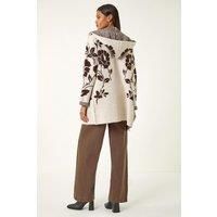 Floral Hooded Knit Cardigan from Roman. Stay cosy in this beautiful floral hooded knit cardigan this Autumn Winter. Crafted from a mix of knitted fabrics, this cardigan features an edge-to-edge opening with long sleeves to keep you warm during the chilly days. The stunning floral design adds a touch of elegance, while the hooded detail ensures you stay protected from the elements. With front pockets for storing essentials, layer this cardigan over your favourite blouse and jeggings, paired with ankle boots for the ultimate fall fashion statement! | Roman Women's Floral Hooded Knit Cardigan Sweater in Beige | Size: 18 - Manufacturers part number: Roman_5063566338104