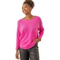 Embellished Stripe Knit Jumper from Roman. This style is ONE size. Add a touch of sparkle to your Autumn/Winter wardrobe with this chic embellished jumper. Featuring a stylish crew neck and classic stripe design, this knit is perfect for adding some extra flair to your outfit. The long sleeves and soft knit fabric ensure a comfortable and cosy wear. Style with jeggings and ankle boots for a casual yet sophisticated look that will take you from day to night effortlessly! | Roman Women's Embellished Stripe Knit Jumper in Cerise - Manufacturers part number: Roman_5063566339989