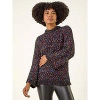 Fluffy Print Knit Jumper from Roman. Keep warm and stylish this Autumn Winter in our fluffy colour pop knit. Embrace the chilly weather with this cosy crew neck jumper featuring fun abstract stripe detailing that adds a touch of uniqueness. The long sleeves provide extra warmth and comfort. Style it effortlessly with wide leg jeans and ankle boots for a trendy outfit that will make you stand out from the crowd! | Roman Women's Fluffy Print Knit Jumper in Black | Size: 16 - Manufacturers part number: Roman_5063566359598