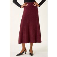 Shimmer Knit Midi Skirt from Roman. Get ready to sparkle and shine in this shimmer knit skirt this Autumn/Winter season. Crafted from a soft shimmer knitted fabric, this midi length skirt features a comfortable elasticated waist for a perfect fit. Pair this glamorous skirt with your favourite knitwear and boots for a stylish and cosy look that will take you from day to night with ease! | Roman Women's Shimmer Knit Midi Skirt in Dark Red | Size: 12 - Manufacturers part numbers: Roman_5063566366275|170196p