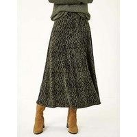 Abstract Diamond Print Midi Skirt from Roman. Stay stylish and cosy this Autumn/Winter season in our Abstract Diamond print midi skirt. Featuring a striking print and a comfortable elasticated waist, this midi-length skirt is easy to pull on and go. Pair with your favourite knitwear and boots for a chic and effortless look that will keep you on-trend all season long! | Roman Women's Abstract Diamond Print Midi Skirt in Khaki | Size: 16