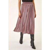 Velvet Pleated Midi Skirt from Roman. Make a statement in this luxurious velvet pleat skirt, a must have for the Autumn/Winter season. Crafted from sumptuous velvet fabric, this midi length skirt features an elasticated waistband for easy pull on styling. The pleated detail adds a touch of elegance to any outfit, perfect for both casual and dressy occasions. Pair with cosy knitwear and your favorite boots for a chic and stylish look that is sure to turn heads! | Roman Women's Velvet Pleated Midi Skirt in Rose | Size: 12 - Manufacturers part number: Roman_5063566368644