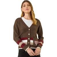 Roman Striped Heart Knit Cardigan - Brown Stay stylish and cosy this Autumn/Winter season with this charming stripe and heart cardigan. The edge to edge design is perfect for layering while the long sleeves keep you warm on chilly days. The bold stripe pattern with heart motifs adds a playful touch to your outfit. Pair with jeggings and ankle boots for a chic and comfortable look that's perfect for everyday wear! Material Content: 57% Polyester 26% Acrylic 14% Nylon 3% Elastane Washing Instructions: Ha... - Manufacturers part number: Roman_5063566383593