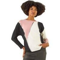 Colour Block Sequin Knit Jumper from Roman. This style is ONE size. Embrace the colourful vibes of Autumn/Winter in this stunning sequin crew neck jumper. Featuring a trendy colour block design, this jumper is completed with eye-catching sequin detailing and classic long sleeves for extra warmth. Pair it effortlessly with your favourite jeans and chic ankle boots for a stylish and cosy look that will take you from day to night with ease! | Roman Women's Colour Block Sequin Knit Jumper in Pink - Manufacturers part number: Roman_5063566399945