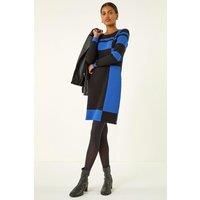 Colour Block Knitted Dress from Roman. Stand out this Autumn/Winter in this chic colour block knit dress. With a classic round neck and flattering knee length, this dress is perfect for any occasion. The eye-catching colour block design adds a modern twist, while the long sleeves provide a stylish yet practical touch. Easy to throw on over the head, pair with tights and ankle boots for a fashion-forward look that will keep you warm in style! | Roman Women's Colour Block Knitted Dress in Royal | Size: 10 - Manufacturers part number: Roman_5063566403710