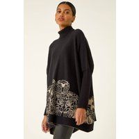 Roman Mono Print High Neck Knit Jumper - Black Stay stylish and snug this Autumn Winter in this high-neck mono design knit. With long sleeves and a striking mono pattern this knit is both chic and versatile. Cut from a mix of soft knitted fabrics. Pair with wide-leg jeans and ankle boots for a complete look that's perfect for the colder months. Material Content: 50% Viscose 32% Polyester 18% Polyamide Washing Instructions: Machine Washable Length: Approx. 74cm High Neckline Long Sleeves - Manufacturers part number: Roman_5063566410121